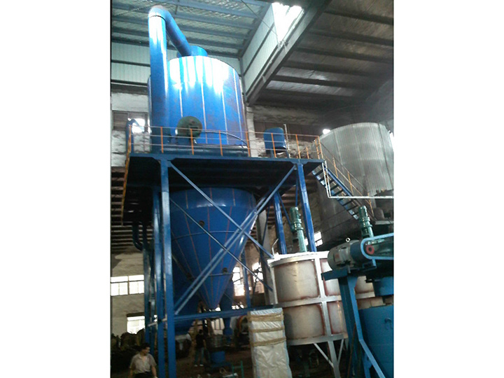 將旋風分離器、布袋除塵器吊置廠房預先設定好的位置,先連接主機與旋風分離器間的管道,然后連接旋風分離器與布袋除塵器間的管道;